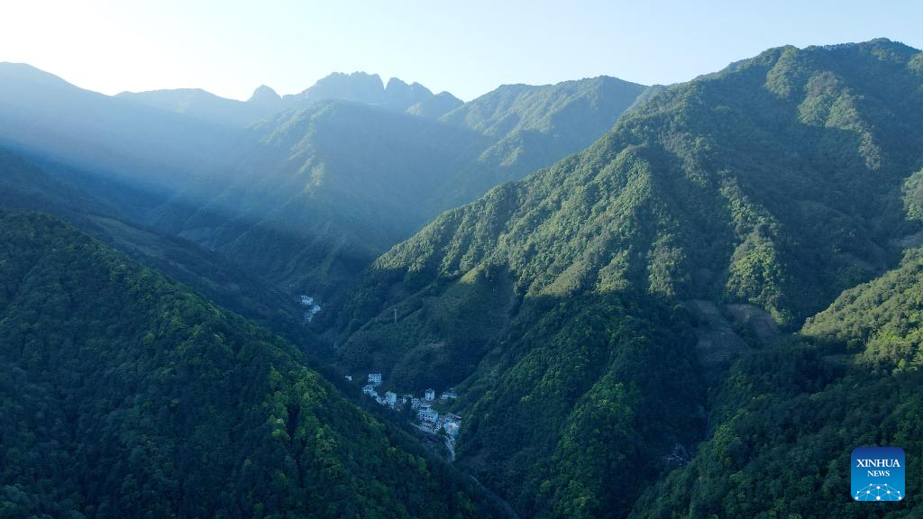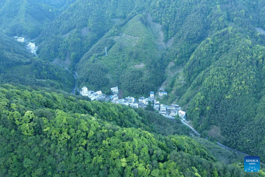 An aerial drone photo taken on May 14, 2024 shows a view of Fuxi Village of Tangkou Township in Huangshan, east China's Anhui Province. (Xinhua/Huang Bohan)