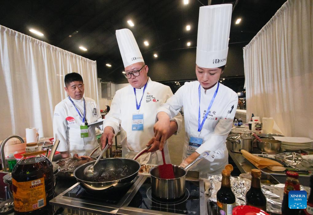 Chefs compete during the 9th World Championship of Chinese Cuisine in Vancouver, British Columbia, Canada, on May 21, 2024. The 9th World Championship of Chinese Cuisine kicked off here on Tuesday, gathering chefs from around the world to compete in Chinese culinary skills in the three-day competition. (Photo by Liang Sen/Xinhua)