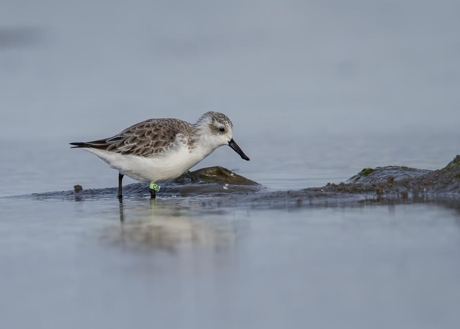 A spoon-billed sandpiper forages at Weitou Bay in Quanzhou, southeast China's Fujian Province, Nov. 26, 2023. (Xinhua/Wei Peiquan)