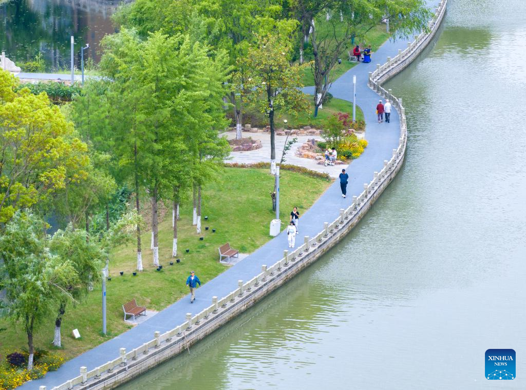 Scenic belt along river offers local people leisure space in E China