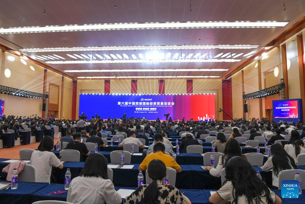 People visit the Sixth Western China International Fair for Investment and Trade in Chongqing International Expo Center in southwest China's Chongqing Municipality, May 23, 2024. With the theme of "New Western China, New Manufacturing, New Services", the fair is held from May 23 to 26 in Chongqing. (Xinhua/Wang Quanchao)