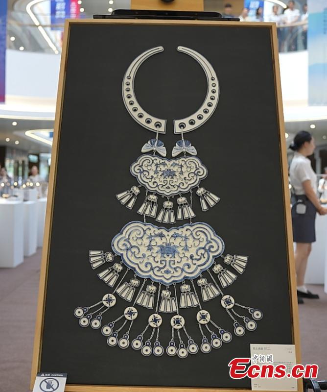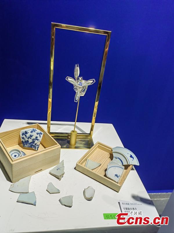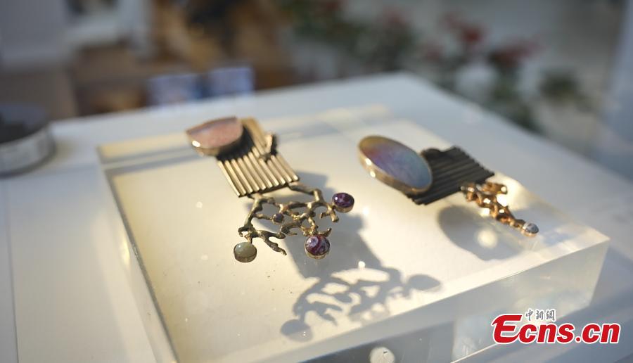Ceramic pieces of jewelry are displayed at an exhibition in Jingdezhen, east China's Jiangxi Province. (Photo: China News Service/Li Jie)
