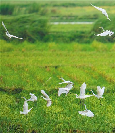 Egrets fly in Wanning city, south China's Hainan Province. (Hainan Daily/Yuan Chen)