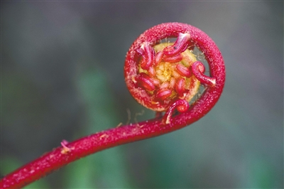 Photo shows a bud of blechnoid in the Wuzhishan section of the Hainan Tropical Rainforest National Park in south China's Hainan Province. (Hainan Daily/Li Tianping)