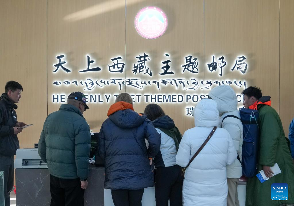 Tourists line up to buy postcards at a themed post office in a base camp of Mount Qomolangma in southwest China's Xizang Autonomous Region, May 24, 2024. The Mount Qomolangma National Park has entered peak tourism season. From Jan. 1 to May 20 this year, the Mount Qomolangma scenic spot has received about 136,000 tourists. (Xinhua/Ding Ting)