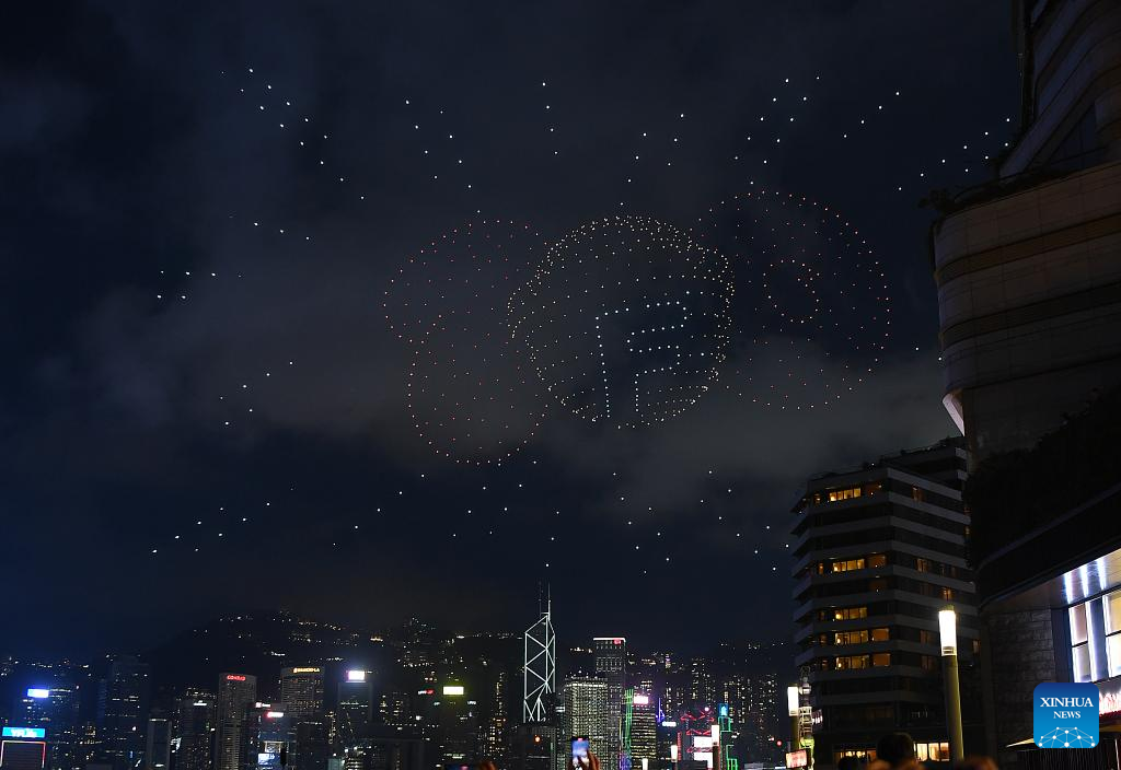 A drone light show featuring Doraemon is seen in Hong Kong, south China, May 25, 2024. (Xinhua/Chen Duo)