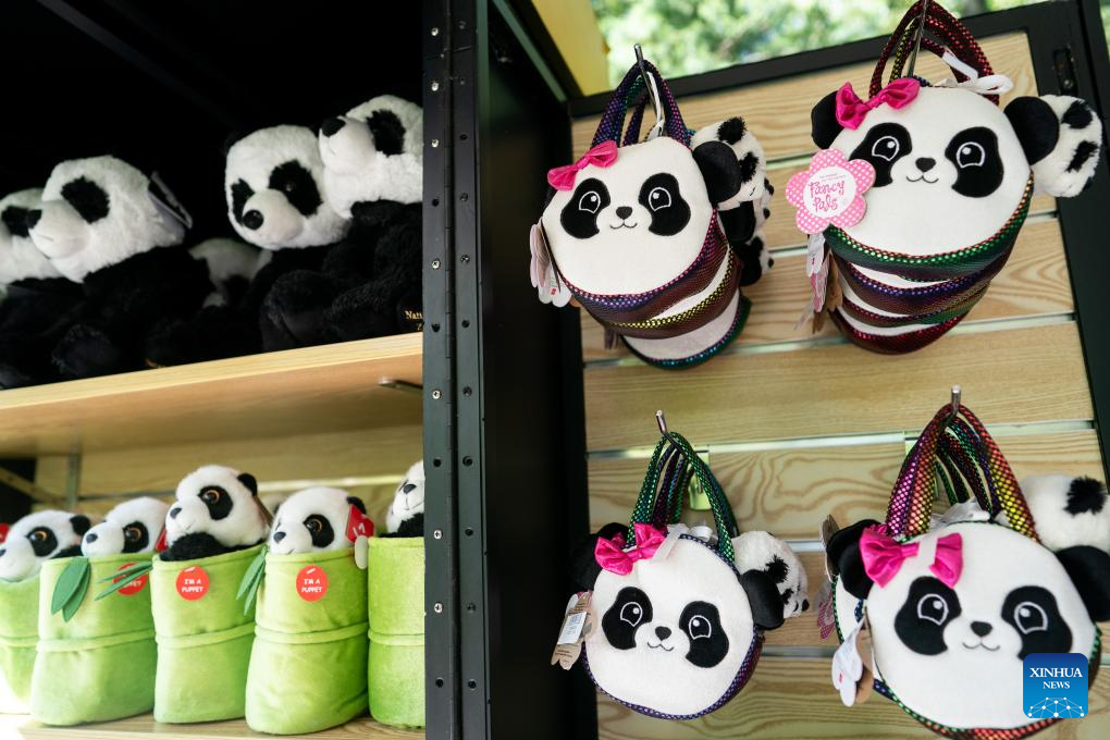 Souvenirs themed with giant pandas are seen at Smithsonian's National Zoo in Washington, D.C., the United States, on May 29, 2024. The National Zoo in Washington, D.C., announced Wednesday it will receive two giant panda cubs, one male and one female, from China by the end of the year. (Xinhua/Liu Jie)