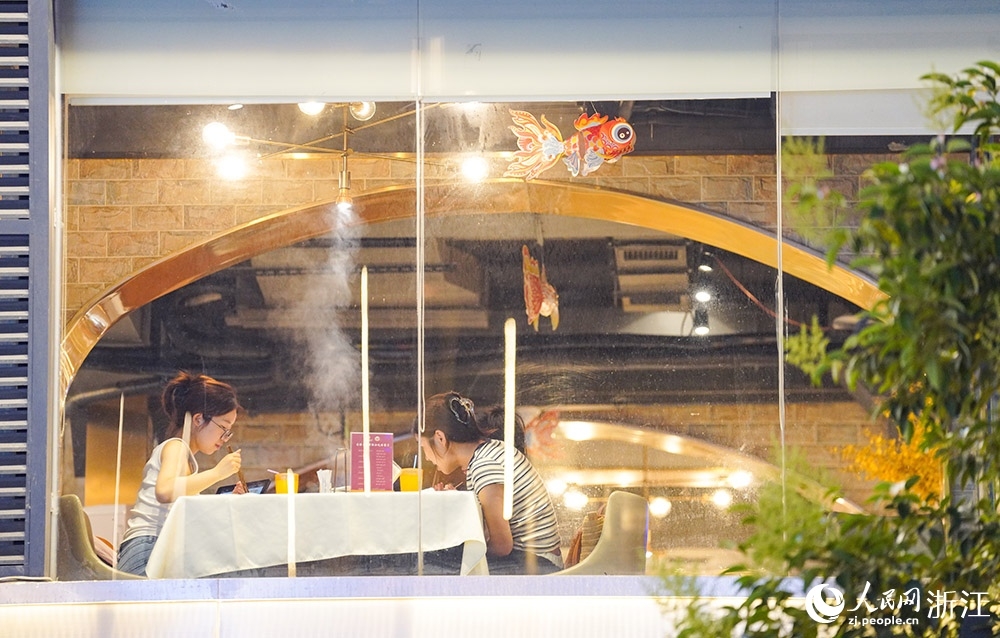 Tourists dine in a restaurant along the street at the Wulin night market in Hangzhou, east China’s Zhejiang Province, May 25, 2024. (People’s Daily Online/Zhang Yongtao)