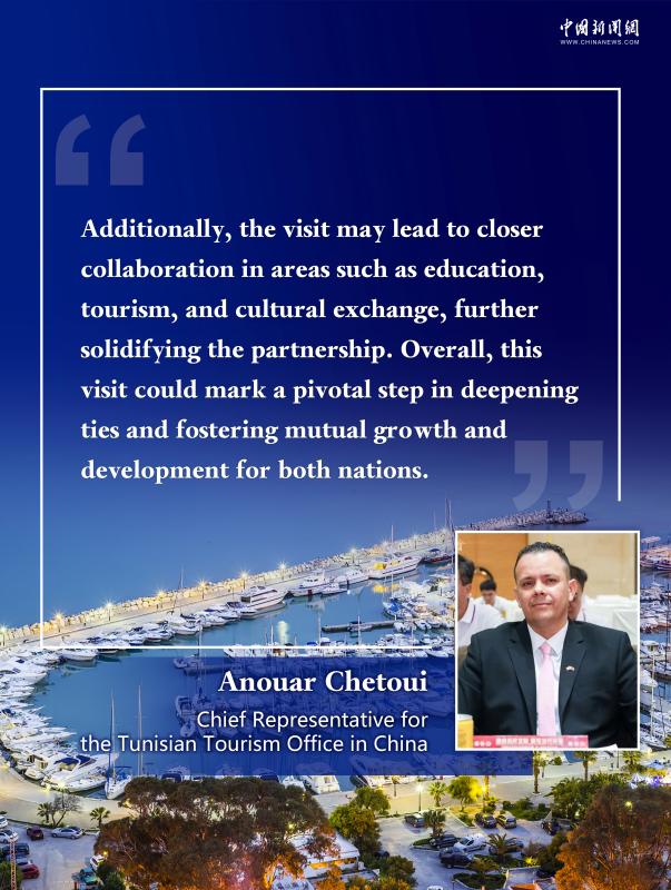 (ECNS) -- Tunisian President Kais Saied's state visit to China holds significant potential for strengthening bilateral relations between Tunisia and China, said Anouar Chetoui, Chief Representative for the Tunisian Tourism Office in China.