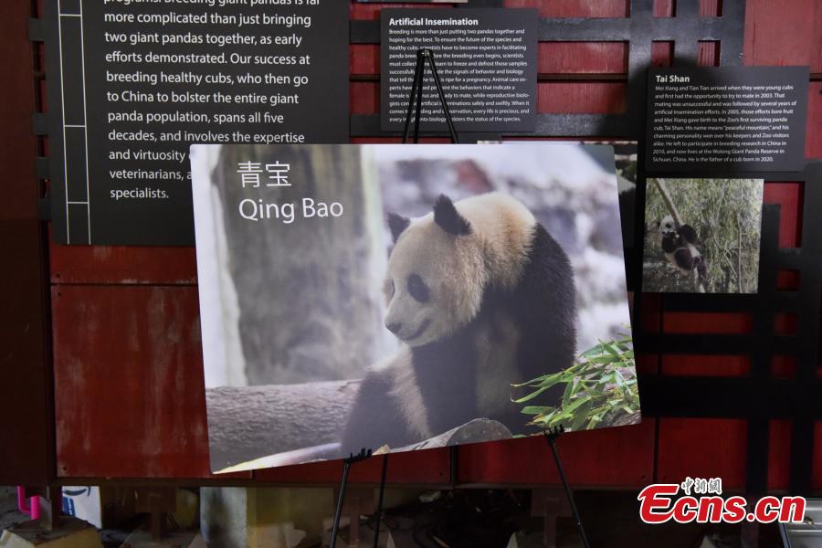 A photo of giant panda Qing Bao is displayed during a press conference at Smithsonian’s National Zoo in Washington, U.S., May 29, 2024. (Photo: China News Service/Sha Hanting)