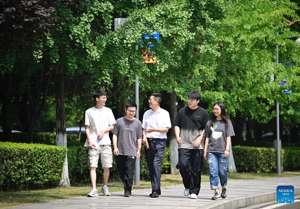 Zhong Yuanzhang (1st R) communicates with colleagues on an experimental platform in Nuclear Power Institute of China in Chengdu, southwest China's Sichuan Province, May 24, 2024. Zhong was the deputy chief designer of Hualong One nuclear power project of the Nuclear Power Institute of China. Since his graduation from Chengdu University of Science and Technology (now Sichuan University) majoring in chemical engineering in 1986, Zhong has been engaged in reactor structure design and participated in the R&D of more than half of China's nuclear power plants. (Xinhua/Liu Kun)