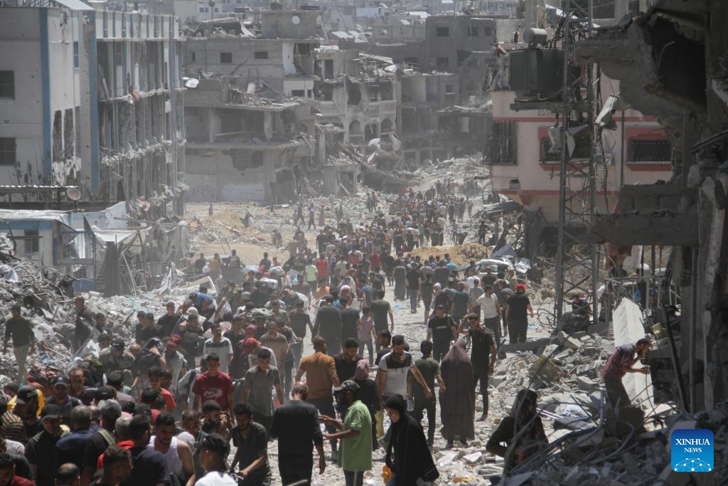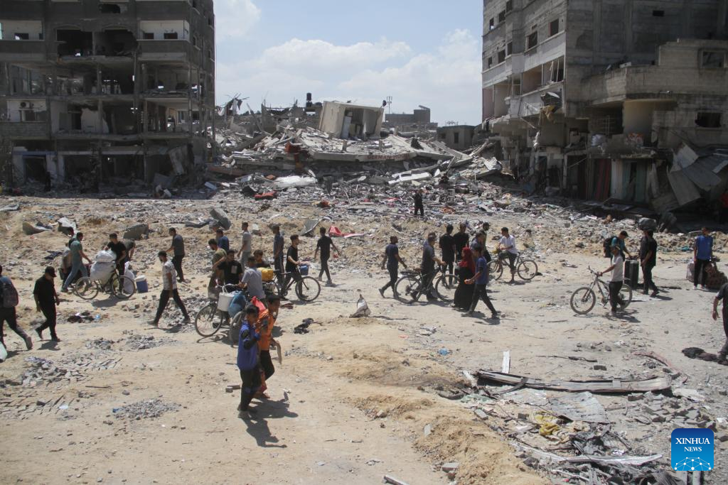 Displaced Palestinians are seen in Jabalia, northern Gaza Strip, on May 30, 2024. Local sources reported that Israeli troops have withdrawn from the western and southern regions of Jabalia in northern Gaza, while some soldiers remain in the northern and eastern areas of the city. In a statement, the emergency committee in the northern Gaza Strip urged residents to "be patient and not return to the northern areas of the Gaza Strip at this time." The statement warned that the Israeli army left a large number of drones that continue to fire on residents. (Photo by Mahmoud Zaki/Xinhua)