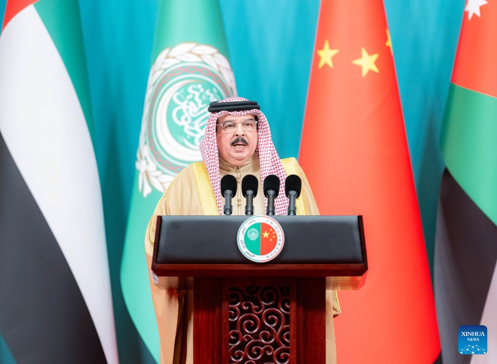 Bahrain's King Hamad bin Isa Al Khalifa speaks during the opening ceremony of the 10th ministerial conference of the China-Arab States Cooperation Forum in Beijing, capital of China, May 30, 2024. (Xinhua/Zhai Jianlan)