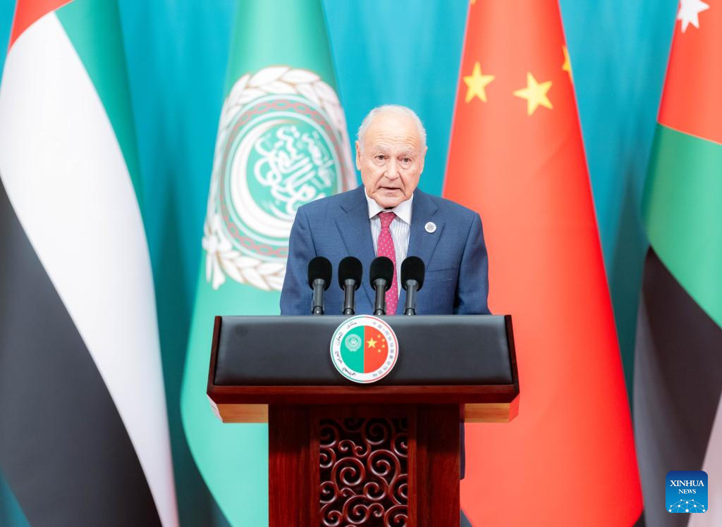 Secretary-General of the League of Arab States Ahmed Aboul-Gheit speaks during the opening ceremony of the 10th ministerial conference of the China-Arab States Cooperation Forum in Beijing, capital of China, May 30, 2024. (Xinhua/Zhai Jianlan)