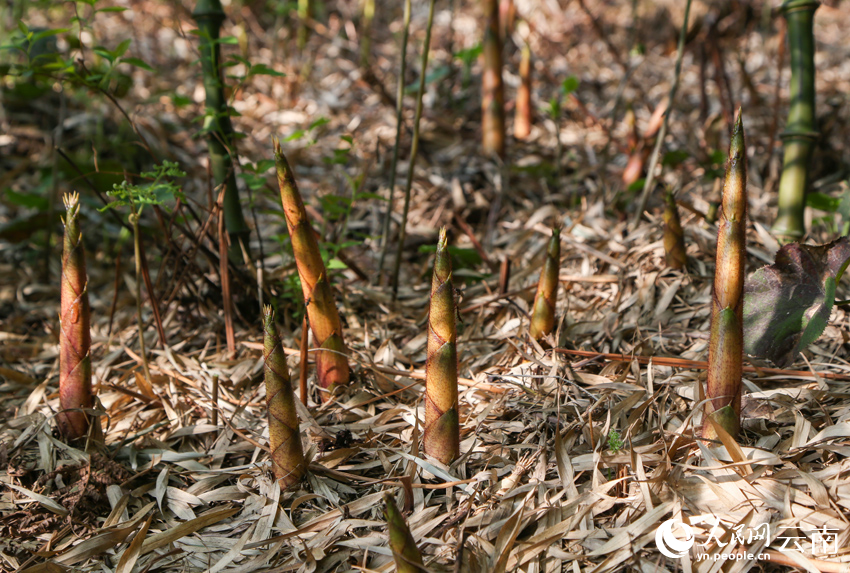 Photo shows bamboo shoots in a bamboo forest in Daguan county, Zhaotong city, southwest China's Yunnan Province. (Photo/Tang Yingping)