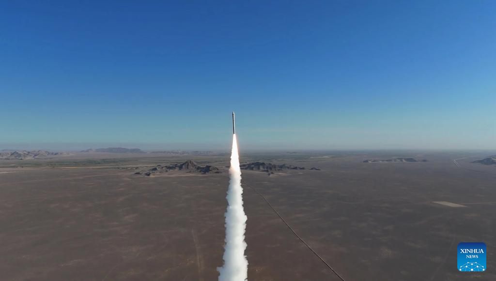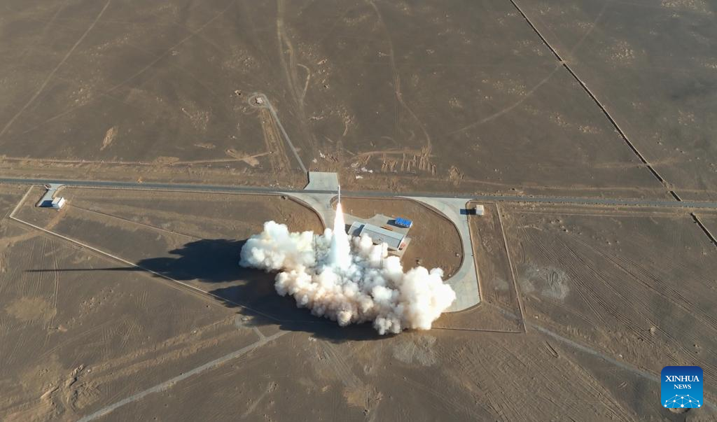 The CERES-1 commercial carrier rocket carrying a group of five satellites blasts off from the Jiuquan Satellite Launch Center in northwest China, May 31, 2024. (Photo by Yang Xiaobo/Xinhua)