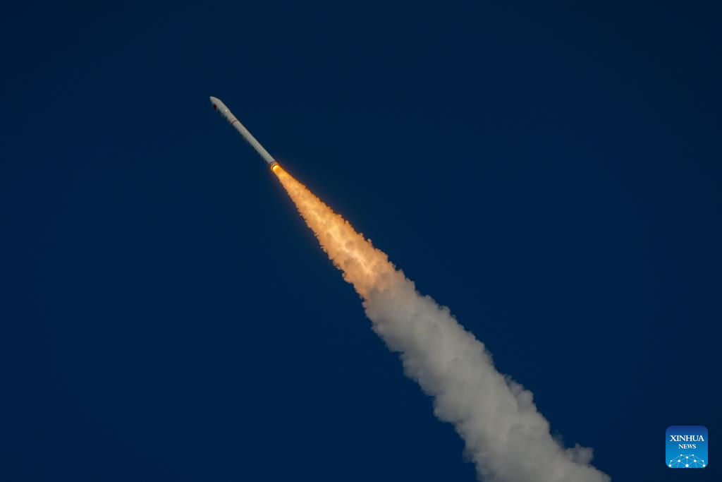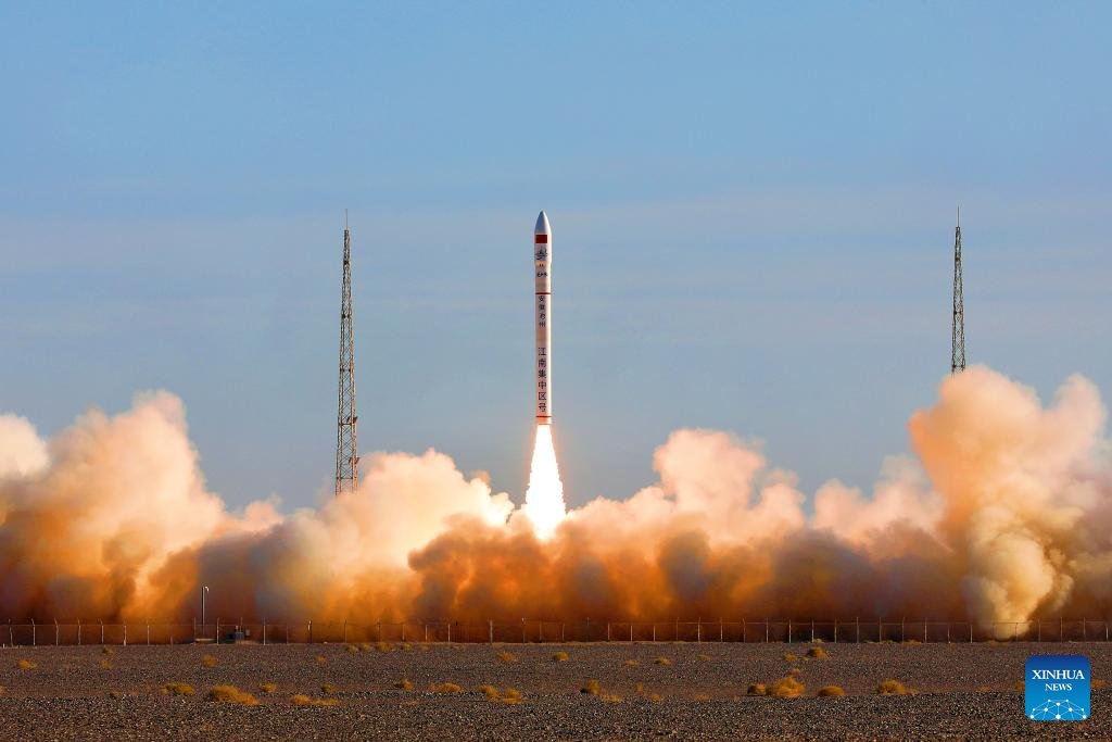 The CERES-1 commercial carrier rocket carrying a group of five satellites blasts off from the Jiuquan Satellite Launch Center in northwest China, May 31, 2024. (Photo by Wang Fei/Xinhua)