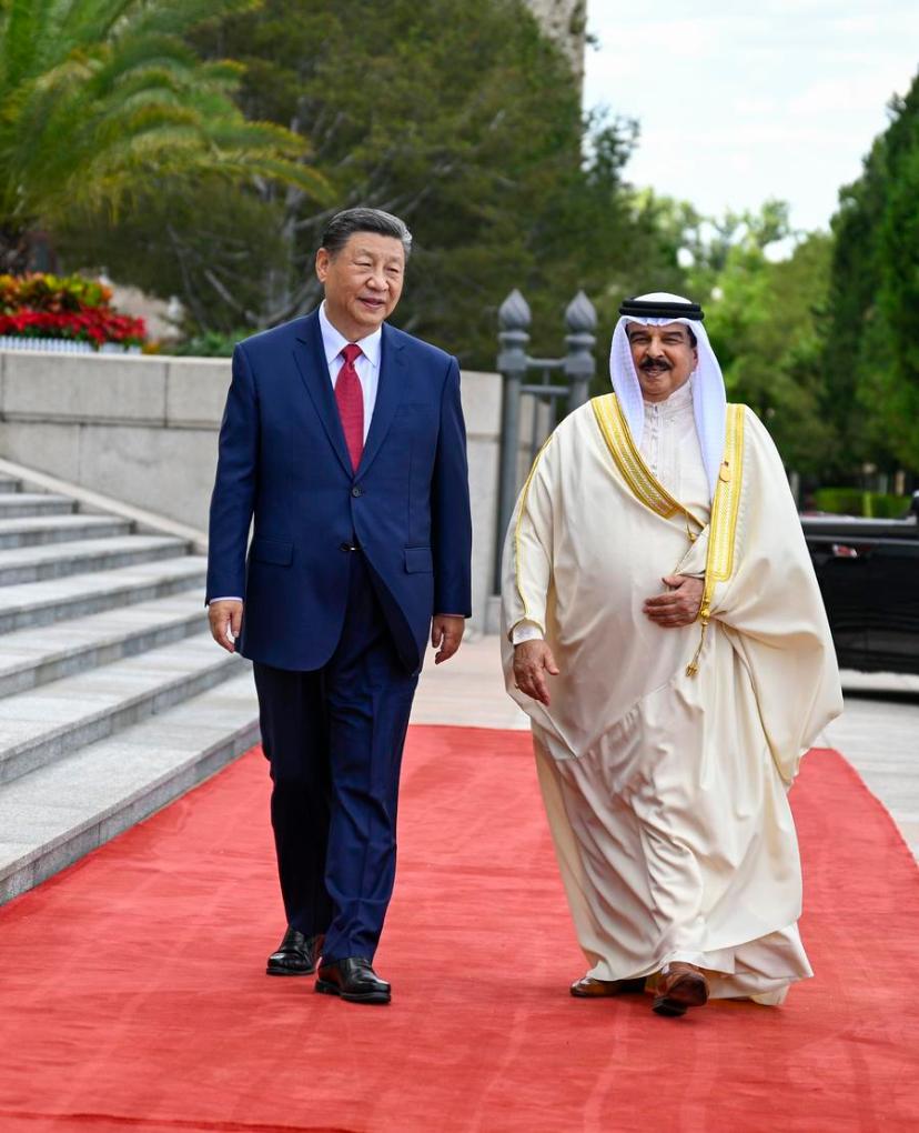 Chinese President Xi Jinping holds a welcome ceremony for Bahrain's King Hamad bin Isa Al Khalifa at the square outside the east gate of the Great Hall of the People before their talks in Beijing, capital of China, May 31, 2024. Xi held talks with Hamad at the Great Hall of the People in Beijing on Friday. Hamad, who is in China on a state visit, attended the opening ceremony of the 10th ministerial conference of the China-Arab States Cooperation Forum. (Xinhua/Yao Dawei)