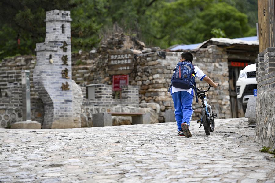 A boy walks past the relic site of an ancient fort in Shixia Village in Yanqing District of Beijing, capital of China, May 31, 2024. (Xinhua/Chen Zhonghao)
