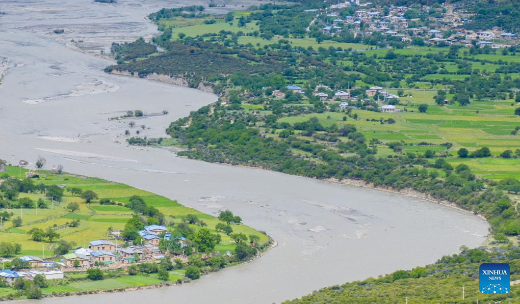 An aerial drone photo taken on June 2, 2024 shows the scenery in Lhari County of Nagqu, southwest China's Xizang Autonomous Region. (Xinhua/Tenzin Nyida)