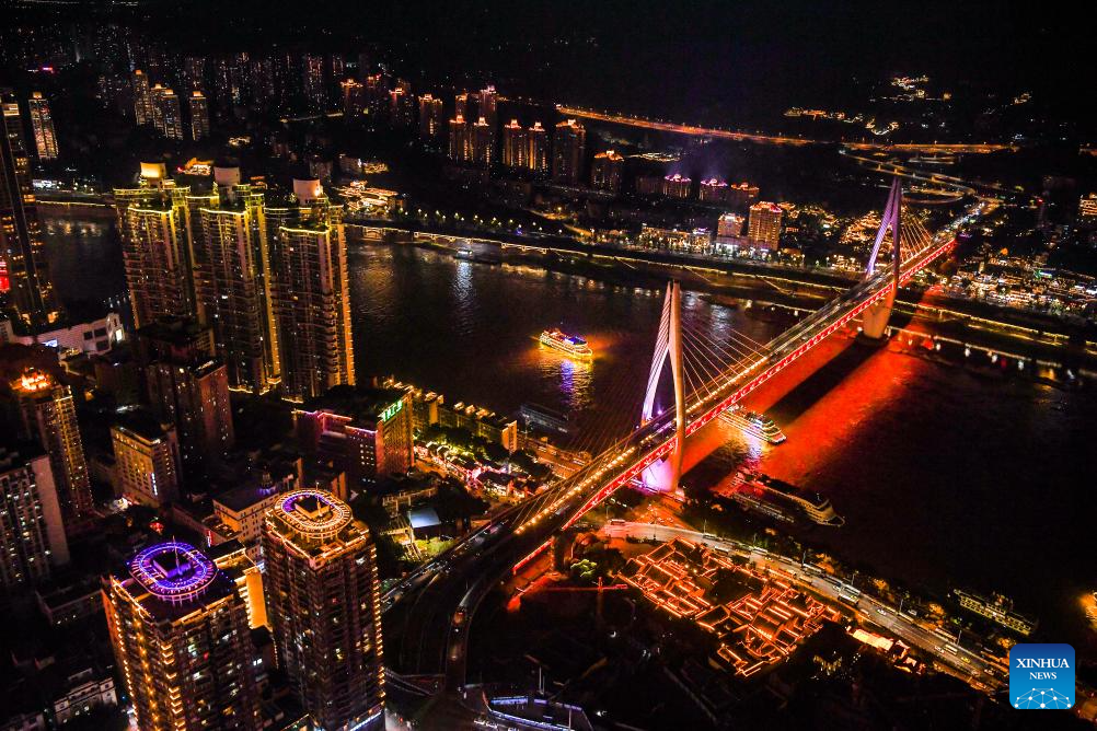 This photo taken on May 30, 2024 shows a night view of Chongqing Municipality, southwest China. (Xinhua/Wang Quanchao)