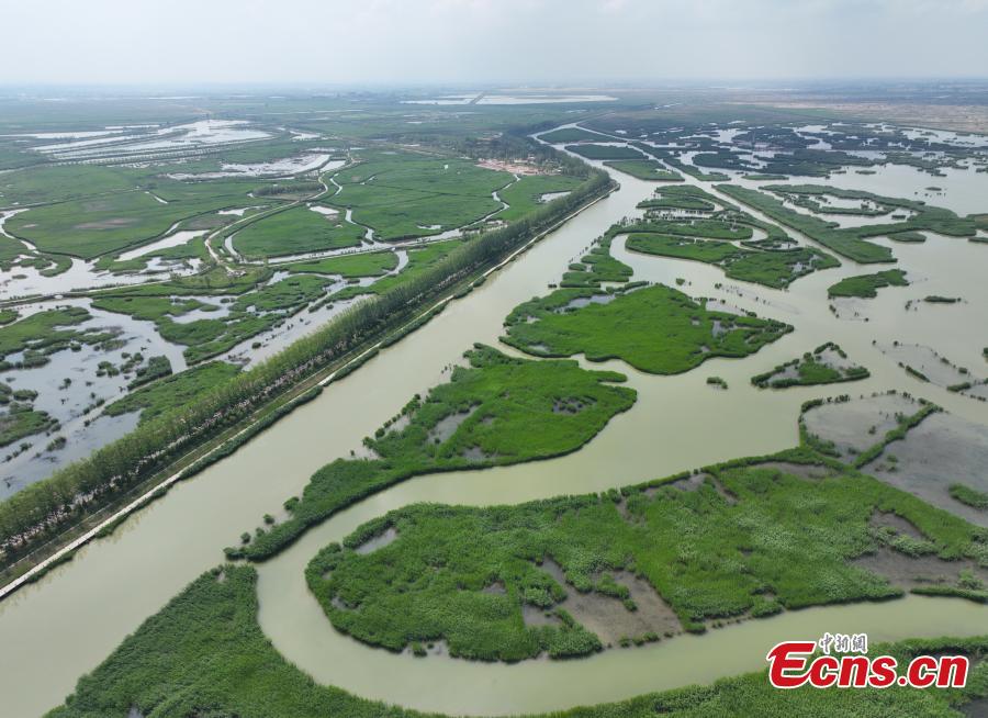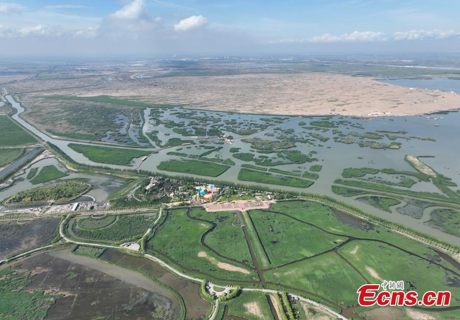 Aerial view of the Shahu Lake scenic spot in Shizuishan, Northwest China's Ningxia Hui Autonomous Region, June 2, 2024. (Photo: China News Service/Yu Jing)