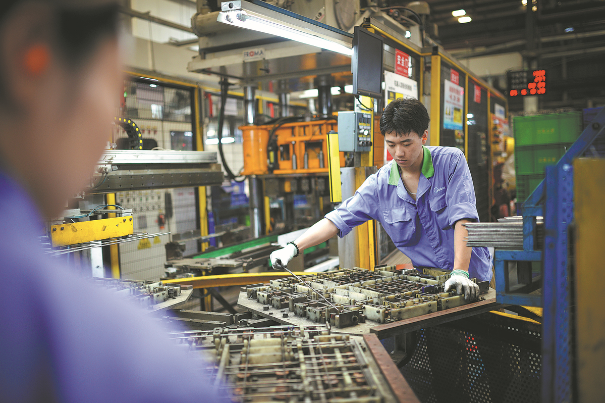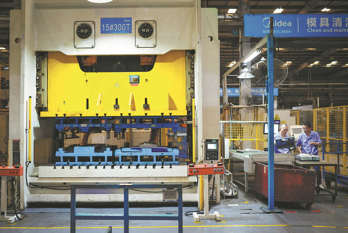 Staff work at the factory of Midea dishwashers in Shunde, Guangdong, on May 16. LI RENZI/XINHUA