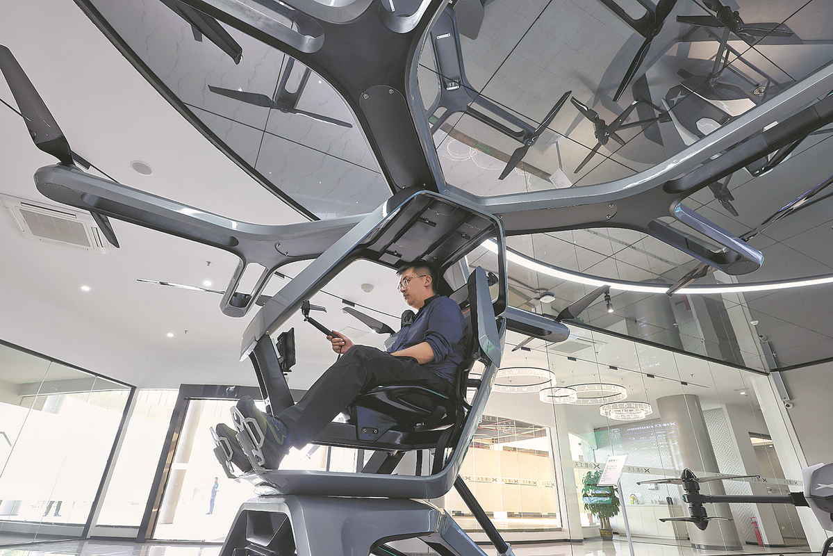 An employee conducts tests in a workshop of the flying car developer Xpeng Aeroht in Guangzhou. PARKER ZHENG/CHINA DAILY