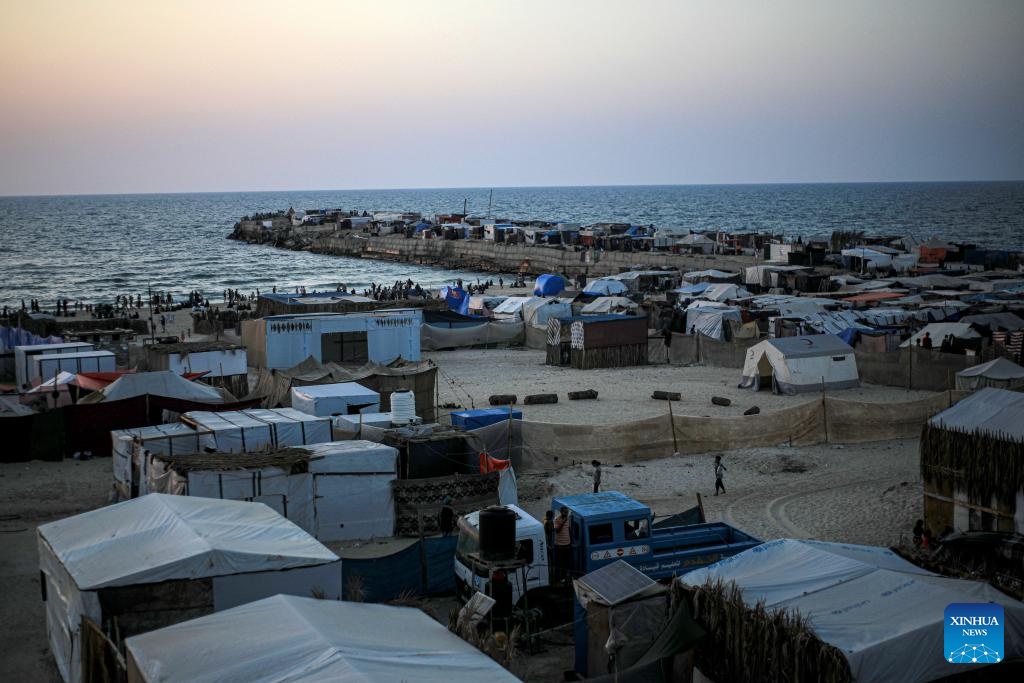 Munira al-Sayed, another displaced woman, has also been forced to sleep in her relatives' tent in Deir al-Balah, central Gaza. "This is the third time I've been displaced with my two children after my husband was killed in an Israeli airstrike in Al-Nuseirat," the 27-year-old mother told Xinhua, her eyes brimming with tears.