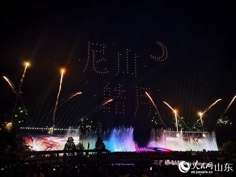 A light and firework show at the Nishan Sacredand in Qufu, east China's Shandong Province. (People's Daily Online/Li Qiaochu)