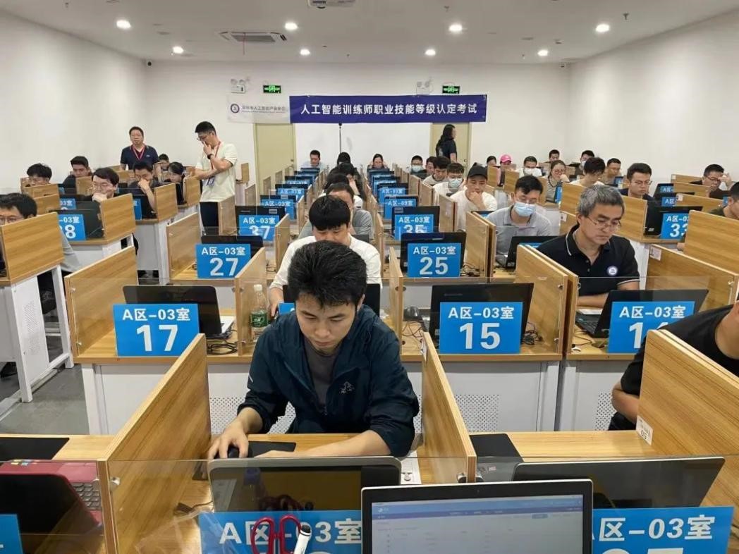 Examinees take a vocational qualification exam for artificial intelligence trainers in Shenzhen, south China's Guangdong province. (Photo from Shenzhen Artificial Intelligence Industry Association)