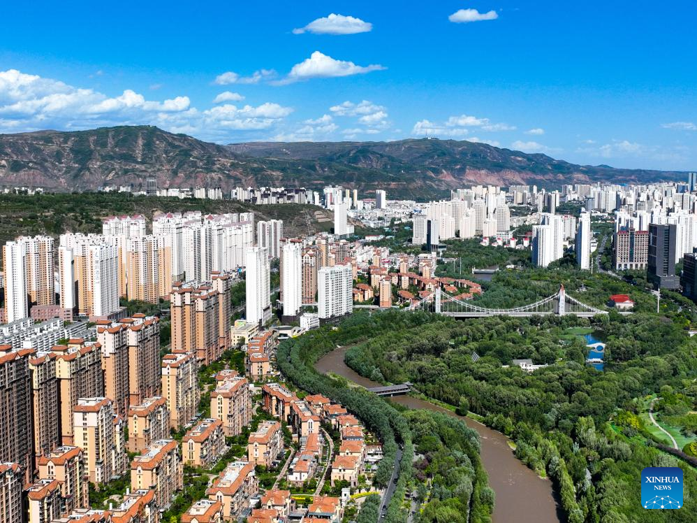 An aerial drone photo taken on June 4, 2024 shows a view of Xining, capital of northwest China's Qinghai Province. Urban ecosystem in Xining has greatly improved thanks to landscaping efforts in recent years, and the city is also more and more habitable. (Xinhua/Zhang Long)