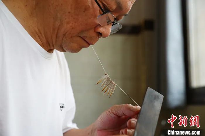 Li Xiaoping, a representative inheritor of the intangible cultural heritage of Wengang calligraphy brush making, has dedicated himself to researching and preserving ancient brush making techniques.