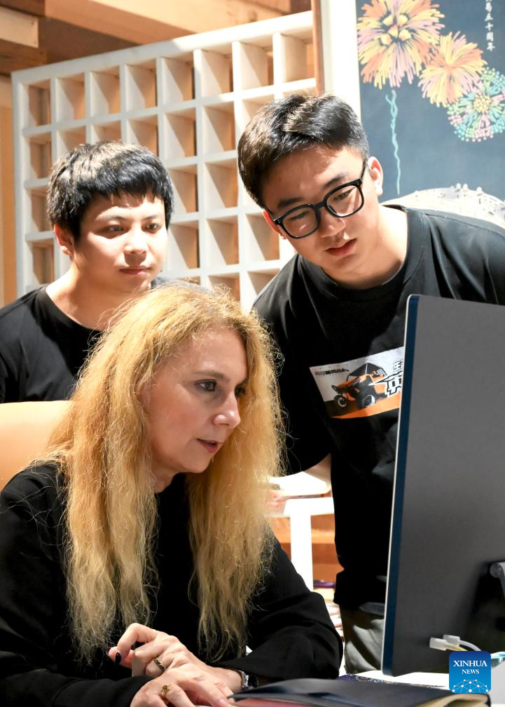 Sophie Poirier works at her studio in Wanzai ancient town, east China's Jiangxi Province, May 11, 2024. (Xinhua/Sui Shangjun)