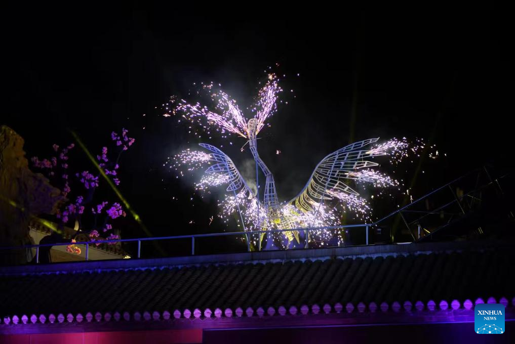 This photo taken on Dec. 1, 2022 shows an installation designed by Sophie Poirier for a fireworks show. (Xinhua)