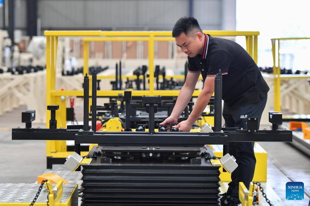 Peng Kai, an industrial mobile robot engineer and a project director, works at the robot debugging workshop of Hunan CIZON Robot Co., Ltd. in Changsha, China's Hunan Province, May 31, 2024. The product localization of core components and the increase of innovative enterprises has injected new impetus into China's robotics industry. In central region of the country, there are a growing number of young people joining the robotics industry to boost its high-quality development. (Xinhua/Chen Zeguo)