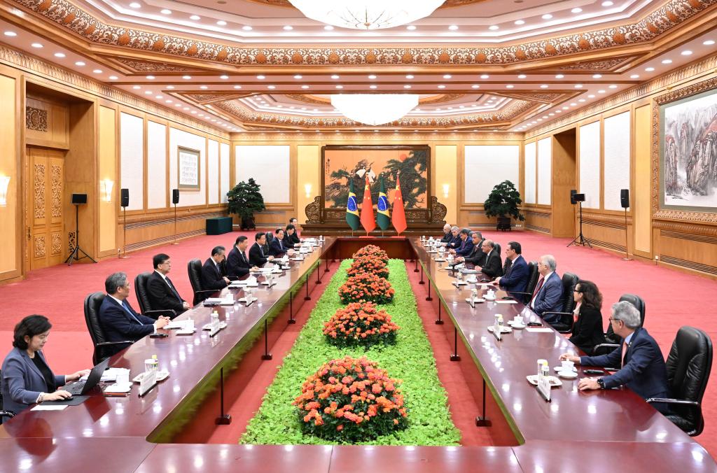 He said that China is willing to work with Brazil to continue to make strategic plans for bilateral relations with more forward-looking vision, give full play to the role of the China-Brazil High-level Coordination and Cooperation Committee, consolidate cooperation in traditional areas, expand cooperation in emerging fields such as green economy, digital economy and innovation, and explore greater synergy between the Belt and Road Initiative and Brazil's reindustrialization strategy and the "Routes for South American Integration" initiative.