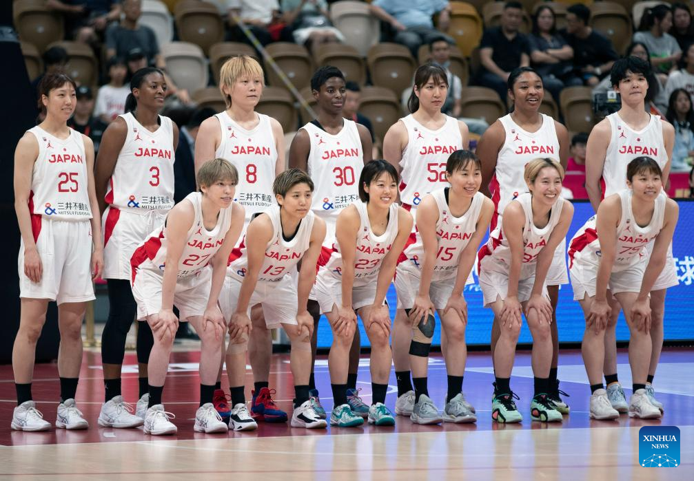 Players of Japan pose for photos before a friendly match between China and Japan at the women's basketball pre-Olympic warm-up series in Xi'an, northwest China's Shaanxi Province, June 7, 2024. (Xinhua/Luo Yuan)