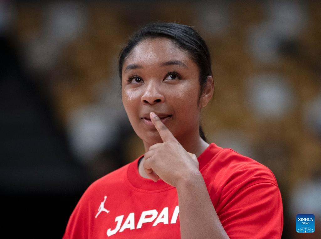 Okoye Monica of Japan reacts before a friendly match between China and Japan at the women's basketball pre-Olympic warm-up series in Xi'an, northwest China's Shaanxi Province, June 7, 2024. (Xinhua/Luo Yuan)