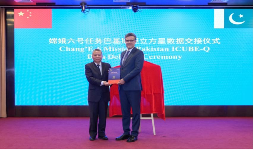 China delivers the data provided by ICUBE-Q, a cube satellite onboard the Chang'e-6 spacecraft, to Pakistan at a handover ceremony held by the China National Space Administration, May 10.