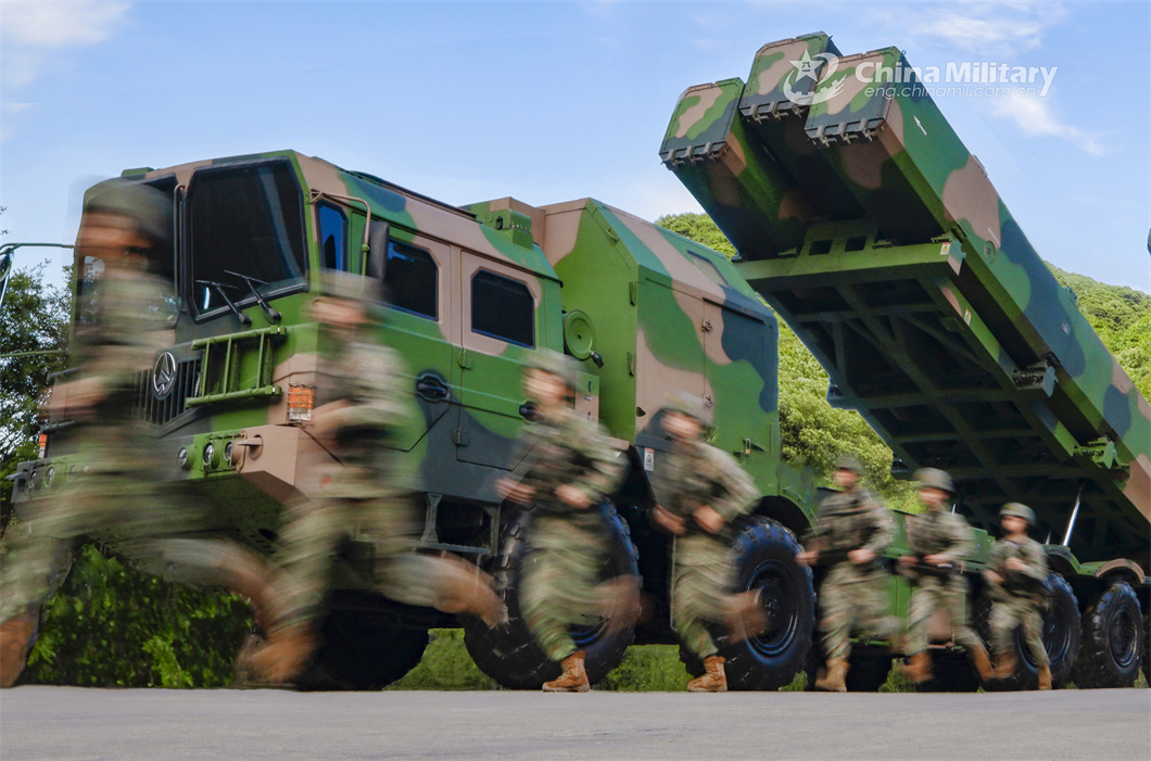 Soldiers assigned to a coast-defense missile regiment of the PLA Navy rush to their positions during a multi-subject training exercise on May 23, 2024. (eng.chinamil.com.cn/Photo by Wu Zhanghui)