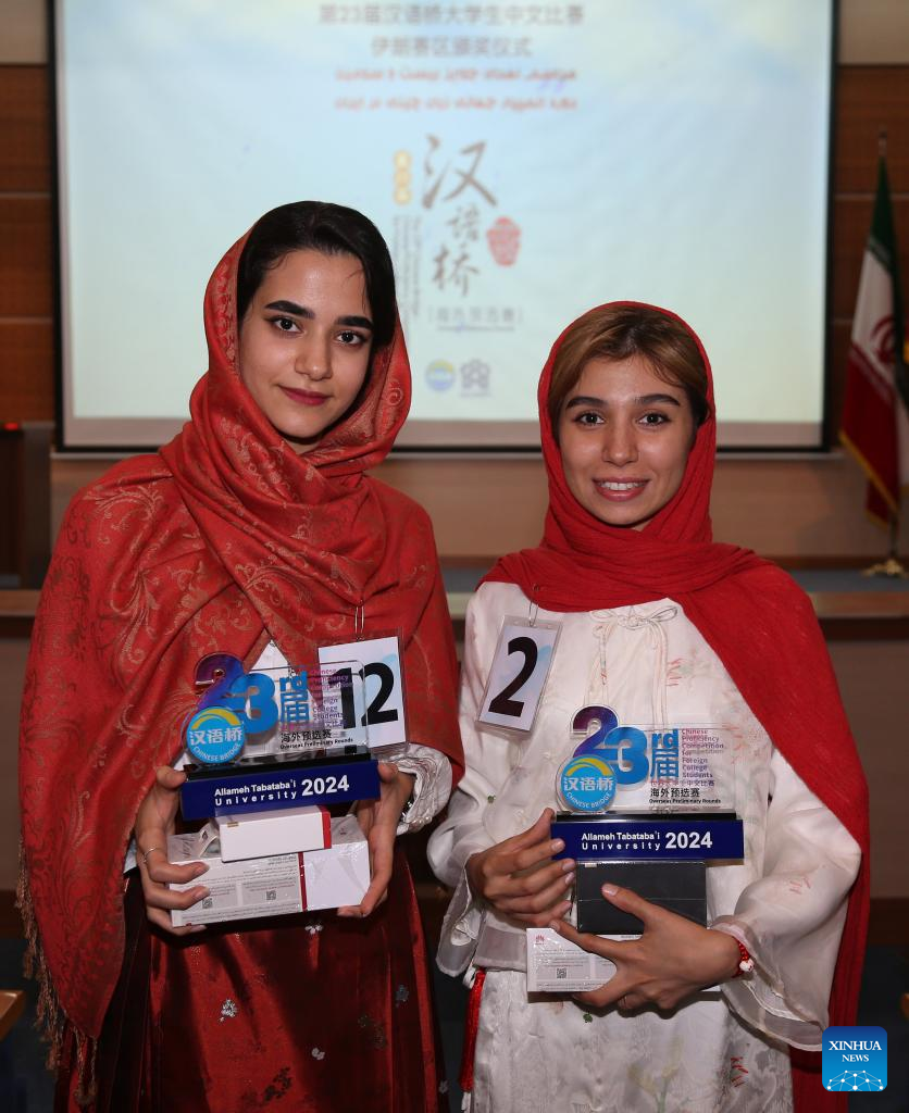 TEHRAN, June 10 (Xinhua) -- The final round of the "Chinese Bridge" language proficiency competition for Iranian college students was held in Iran's capital Tehran on Monday, with two students receiving the first and second prizes.