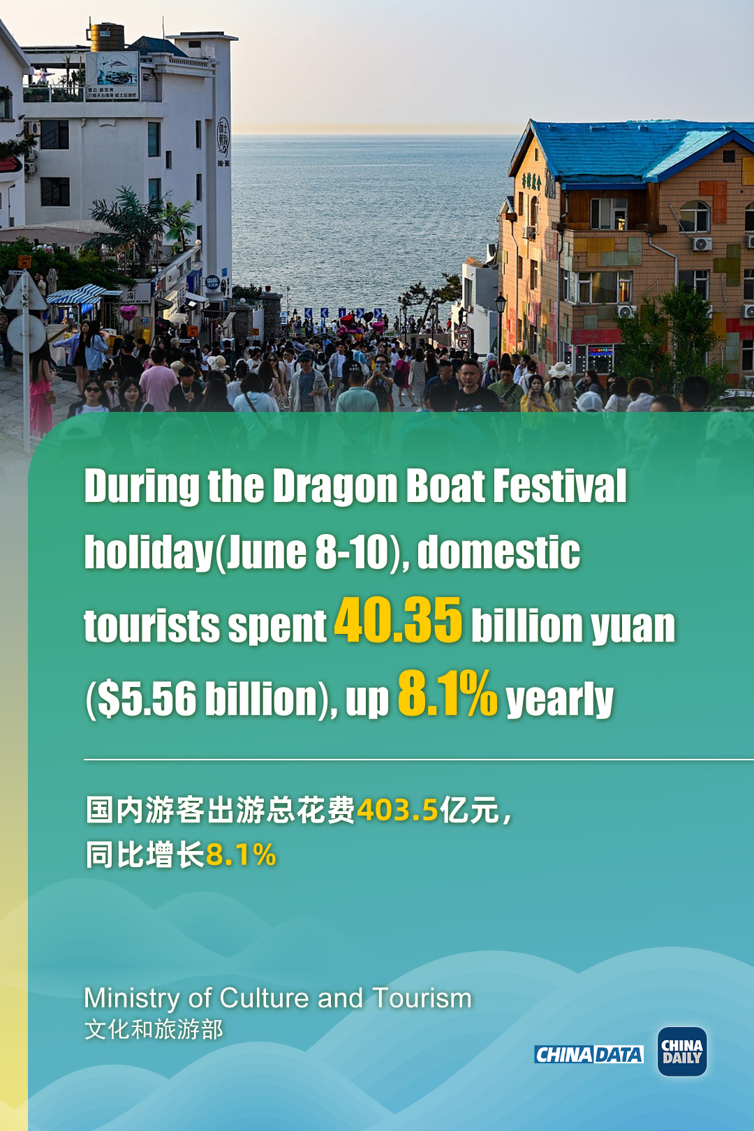 China's consumption in tourism, catering, retail, and entertainment rose during the three-day Dragon Boat Festival holiday that ended on Monday, underscoring the country's economic vitality and resilience.