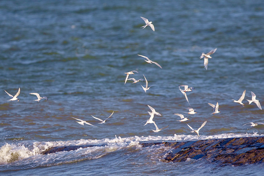 Flocks of terns arrive at an embankment along the Island Ring East Road of Siming district, Xiamen, southeast China’s Fujian Province. (Photo/Ke Yukun)
