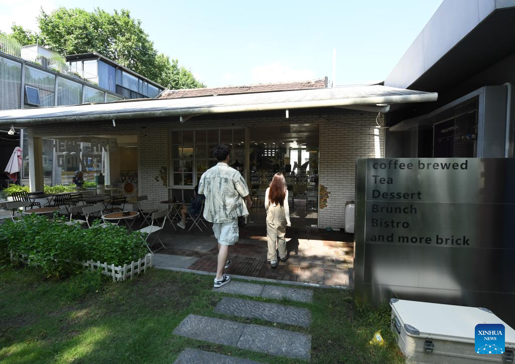 People walk into a cafe in Qiaoxi historical and cultural block along the Grand Canal in Hangzhou, east China's Zhejiang Province, June 12, 2024. (Xinhua/Weng Xinyang)