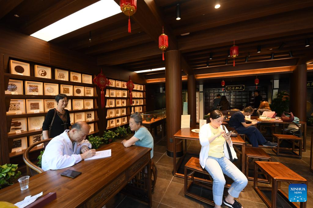 People wait to see doctor at a traditional Chinese medicine clinic in Qiaoxi historical and cultural block along the Grand Canal in Hangzhou, east China's Zhejiang Province, June 12, 2024. (Xinhua/Weng Xinyang)