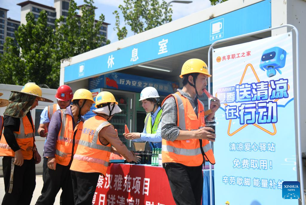 Local organizations in Xi'an provide heat prevention supplies to outdoor workers