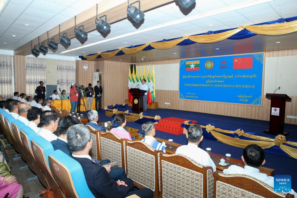 The handover ceremony of the Myanmar National Center for Disease Control (CDC) and Medical Training Center is held in Nay Pyi Taw, Myanmar, June 13, 2024. The Chinese government-aided Myanmar National Center for Disease Control (CDC) and Medical Training Center was officially handed over to Myanmar on Thursday. (Photo by Myo Kyaw Soe/Xinhua)