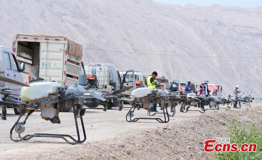 Farmers in Xinjiang have been using drones for plant protection for their advantages of accuracy, efficiency and safety.