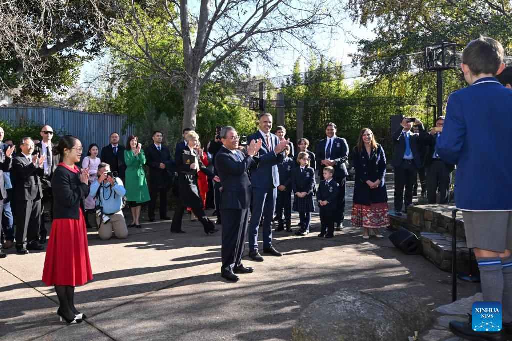 During his tour at Adelaide Zoo, local primary school students sang a panda-themed song in Chinese for Li, who had a cordial chat with them. Li said that they are welcome to visit China, to see the birthplace and habitat of giant pandas, appreciate China's beautiful landscape and the Chinese culture, and turn themselves into little envoys of the friendship between China and Australia.